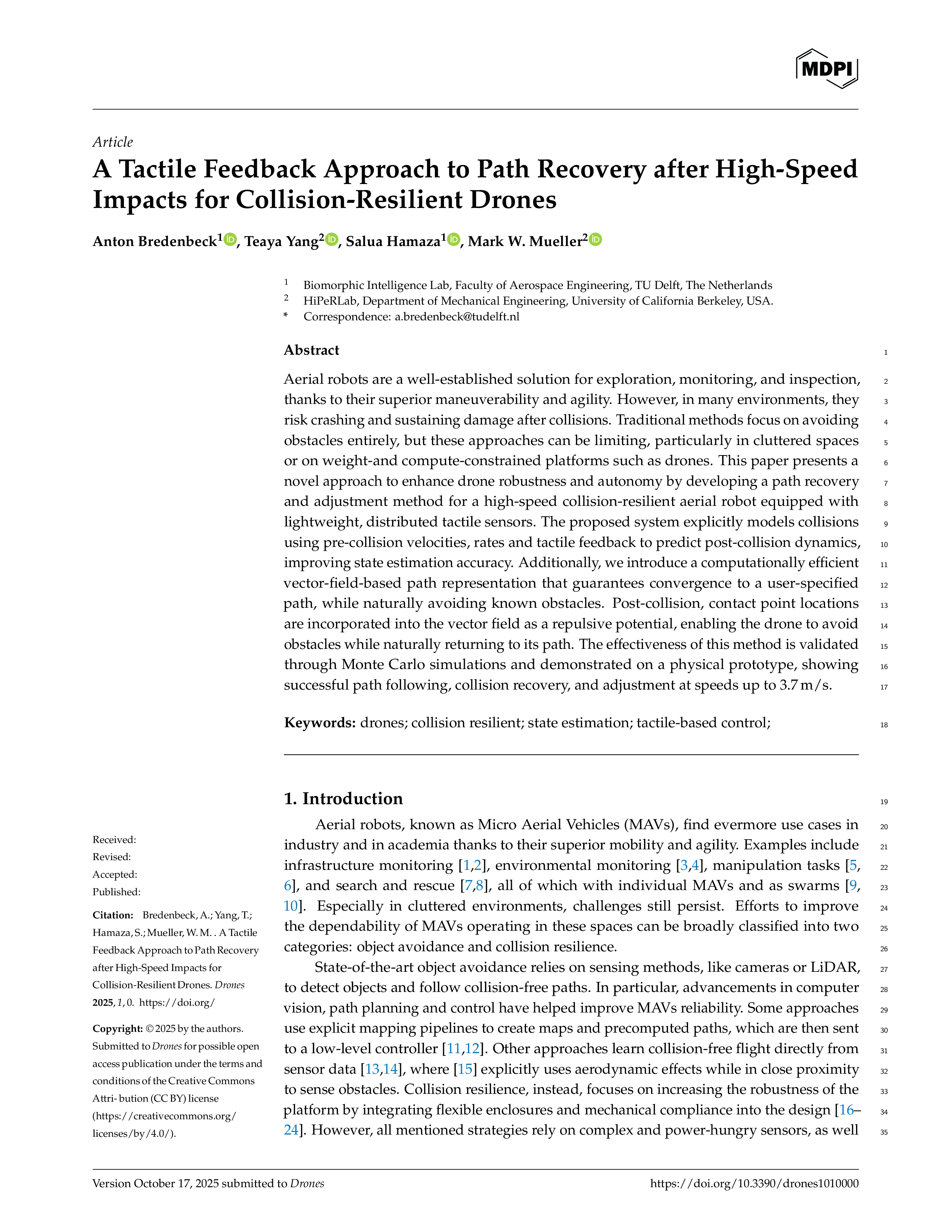 A Tactile Feedback Approach to Path Recovery after High-Speed Impacts for Collision-Resilient Drones
